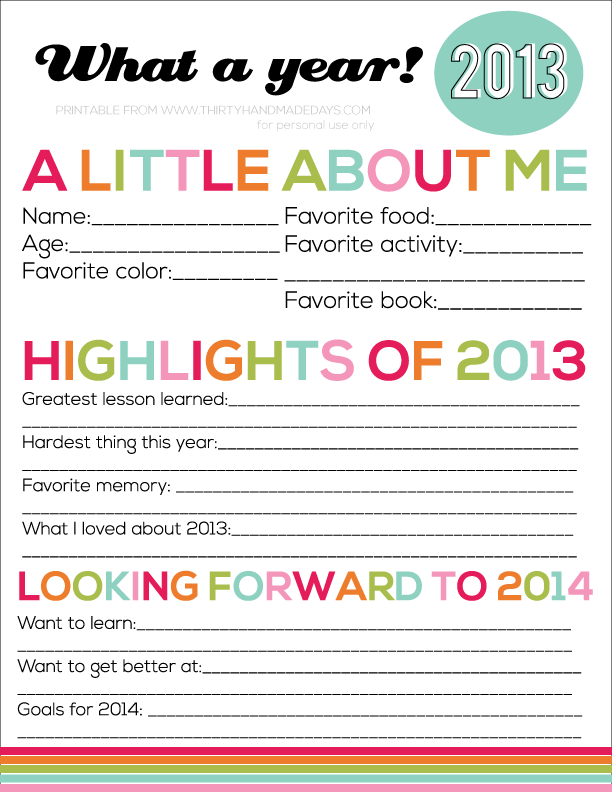 I sadly felt this list was to grown up to do with my kids, but I found this one on pinterest instead. We sat around on New Years Eve with them and filled them out. Print out a few and gather your crew around you- their answers will give you a good giggle. Don't worry about the date there's still time. We always have time as long as we make it.